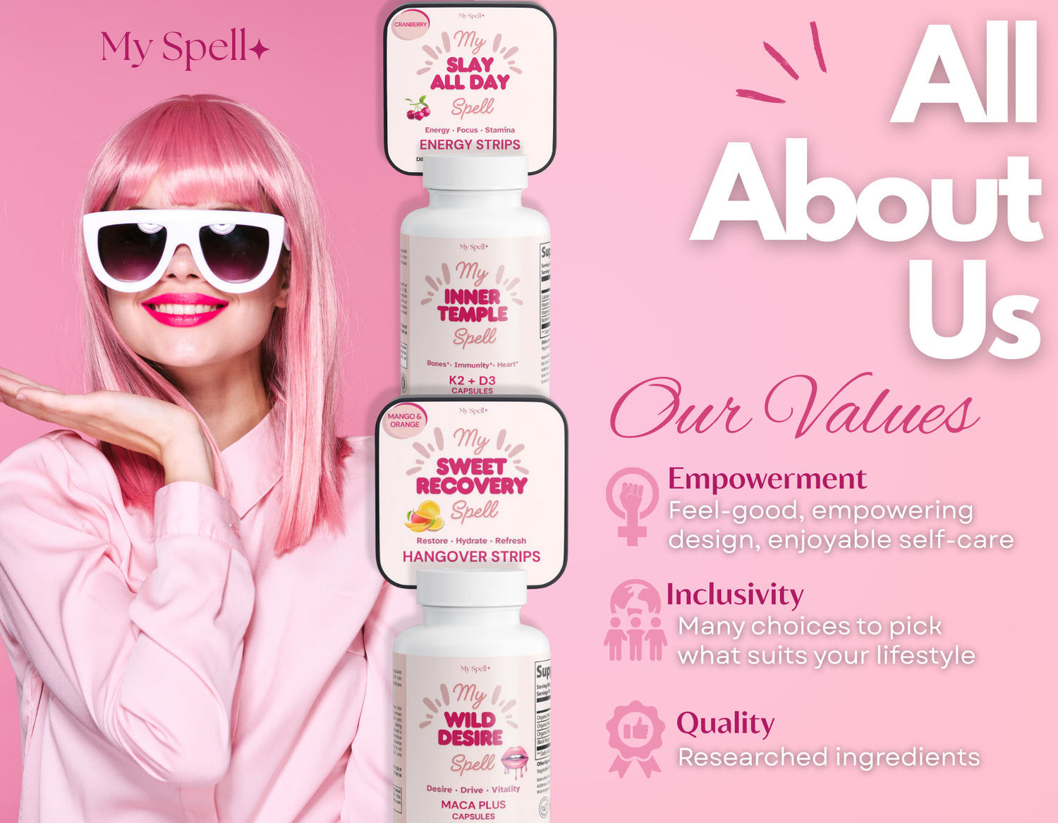 My Spell was born from the belief that wellness should feel intentional, beautiful, and uniquely yours. Each supplement in our collection carries a unique spell name, turning everyday health into a ritual of empowerment.