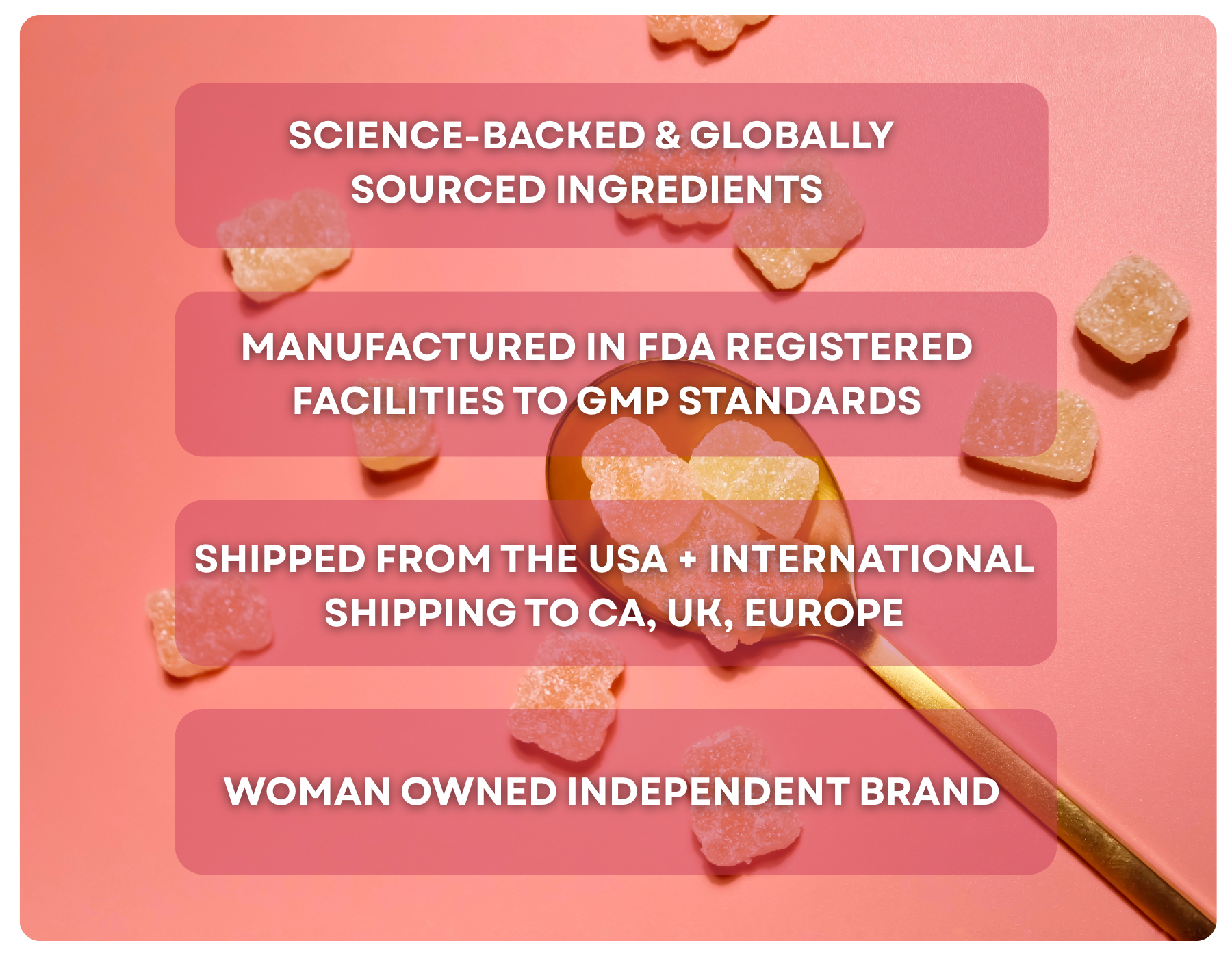 Science-backed ingredients wrapped in feminine, feel-good rituals, made to help women stay consistent and feel their best every day.