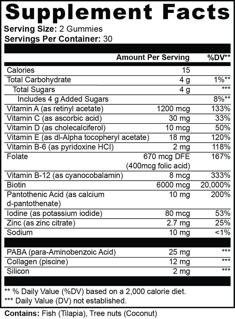 ALLERGEN INFORMATION: Contains fish (collagen) and tree nuts (coconut). Manufactured in a facility that may also process milk, soy, wheat, eggs, peanuts, tree nuts, fish, and crustacean shellfish.